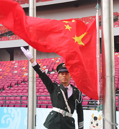 伴隨著慷慨激昂的義勇軍進(jìn)行曲,五星紅旗冉冉升起,鄭州奧體中心全體員工莊嚴(yán)的向國旗行注目禮,以最崇高的方式表達(dá)對祖國母親的敬愛之情。