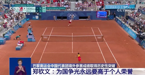 “2024巴黎奧運會,中國體育代表團勇奪40金27銀24銅共91枚獎牌,取得我國夏季奧運會境外參賽歷史最好成績。充分展示了中國作為世界體育大國、奧運強國的實力,折射出新時代建設體育強國、健康中國的成就。”