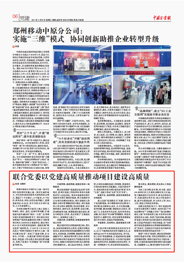 11月2日,由中國企業聯合會、中國企業家協會主管的中央級報紙《中國企業報》對西流湖公司黨建工作先進經驗進行了宣傳報道。